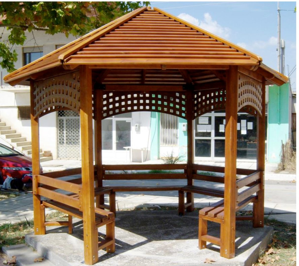 Τα ξύλα βάφονται για να διατηρούν την φυσική τους όψη. Όλα τα ξύλινα στοιχεία μπορούν να κατασκευαστούν με έλατο ή πεύκο. Η σκεπή μπορεί να κατασκευαστεί με σανίδια ή ασφαλτικό κεραμίδι. Διάσταση απο 360 εως 440 εκ και ύψος απο 280 έως 320εκ αντίστοιχα.