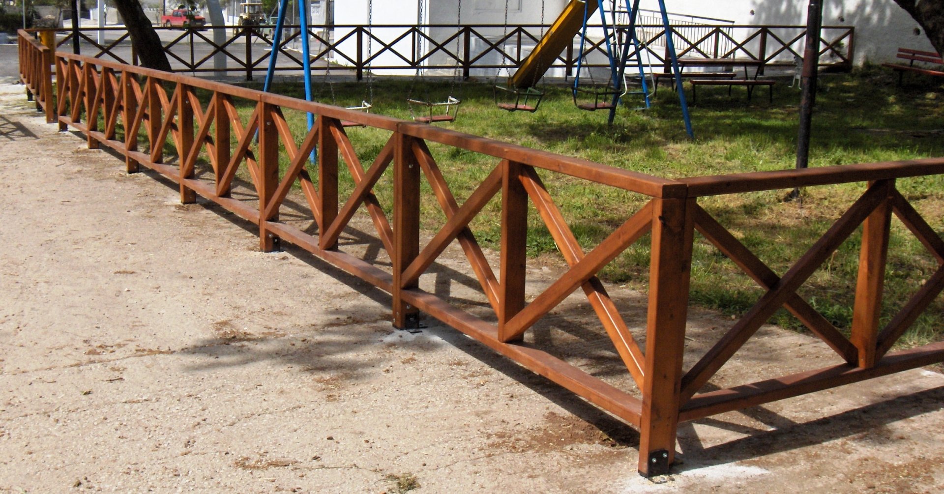 Τα βερνίκια και τα χρώματα με τα οποία προστατεύονται τα ξύλινα και μεταλλικά στοιχεία του εξοπλισμού είναι κατάλληλα για εξωτερική χρήση μη τοξικά και μη αναφλέξιμα σύμφωνα με τις προδιαγραφές της Ευρωπαϊκής Ένωσης. Δεν περιέχουν μόλυβδο, χρώμιο, κάδμιο ή άλλα βαρέα μέταλλα. Τα βερνίκια και τα χρώματα έχουν βάση το νερό ώστε να είναι κατάλληλα και ασφαλή για τα παιδιά. Η διαδικασία χρωματισμού των ξύλινων στοιχείων του εξοπλισμού γίνεται με ηλεκτροστατική βαφή όπως προδιαγράφεται από την οδηγία ΕΝ1176-2008 δίνοντας μεγάλη διάρκεια ζωής στην βαφή.