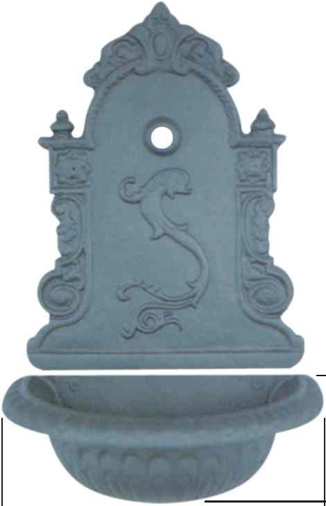 Η βρύση όσο και η γούρνα είναι μαντεμένιες και φέρουν διακοσμητικά σκαλίσματα.