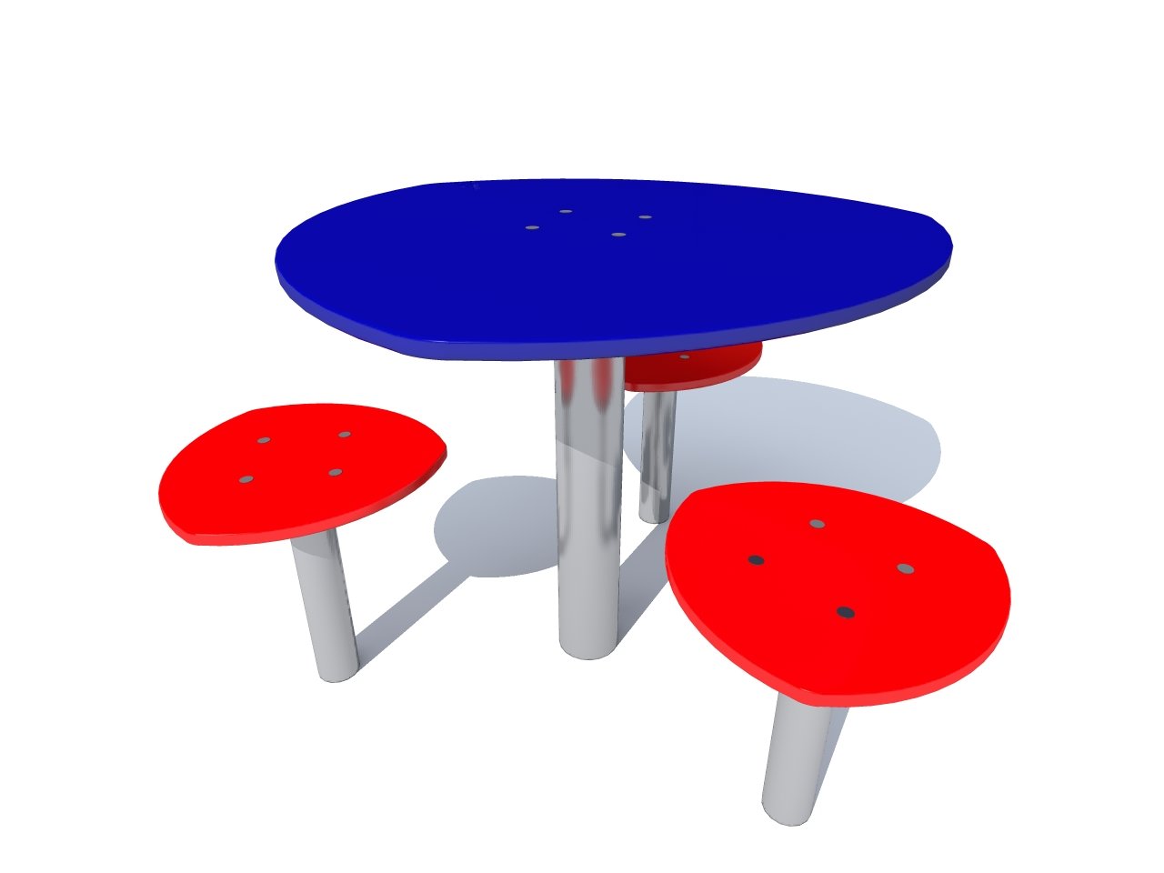 Η κατασκευή αποτελείται από ένα τραπεζάκι τοποθετημένο κεντρικά και τρία καθισματάκια τοποθετημένα περιμετρικά